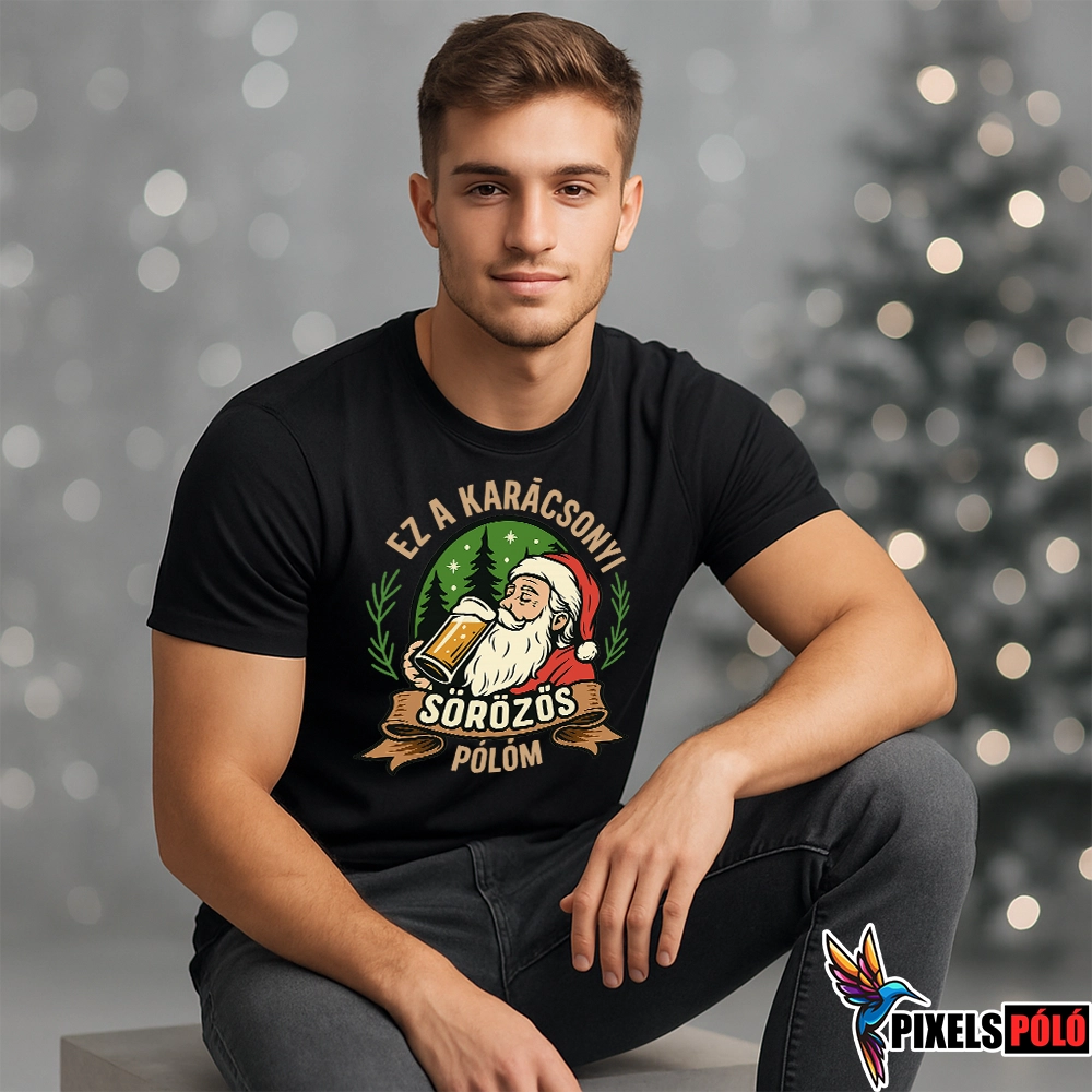 A „Ez a Karácsonyi Sörözős pólóm” felirat tökéletes választás azoknak, akik szeretik a humort és a laza karácsonyi stílust.