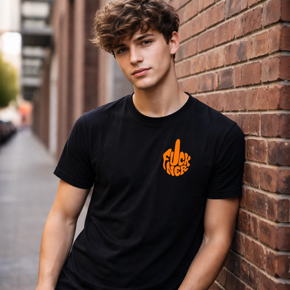 fuck ner póló fekete minimalista felirat politikai feliratos póló fekete narancs logó