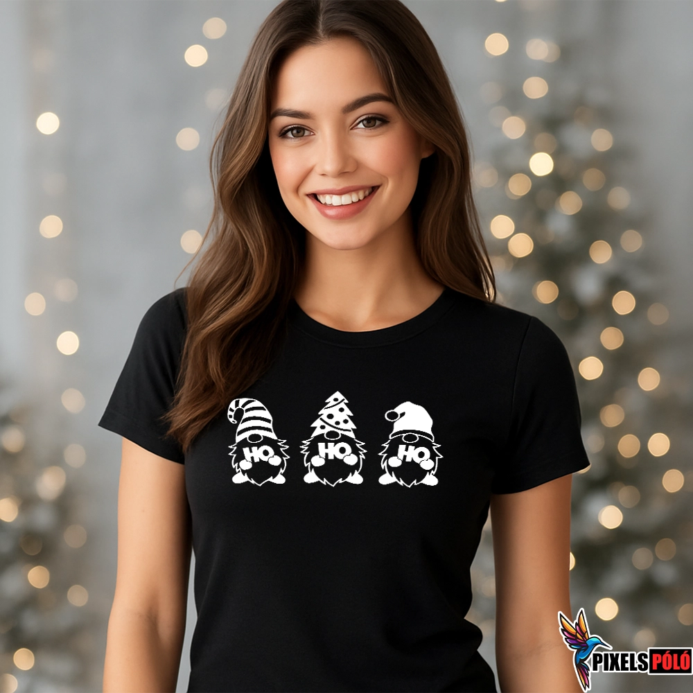 A Ho Ho Ho Gnóm póló egy letisztult, stílusos karácsonyi póló, amely tökéletes az ünnepi hangulat megteremtéséhez 🎄✨