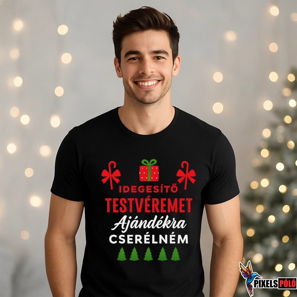 Az Idegesítő testvéremet ajándékra cserélném póló garantáltan mosolyt csal mindenki arcára az ünnepi asztalnál! 🎄😄