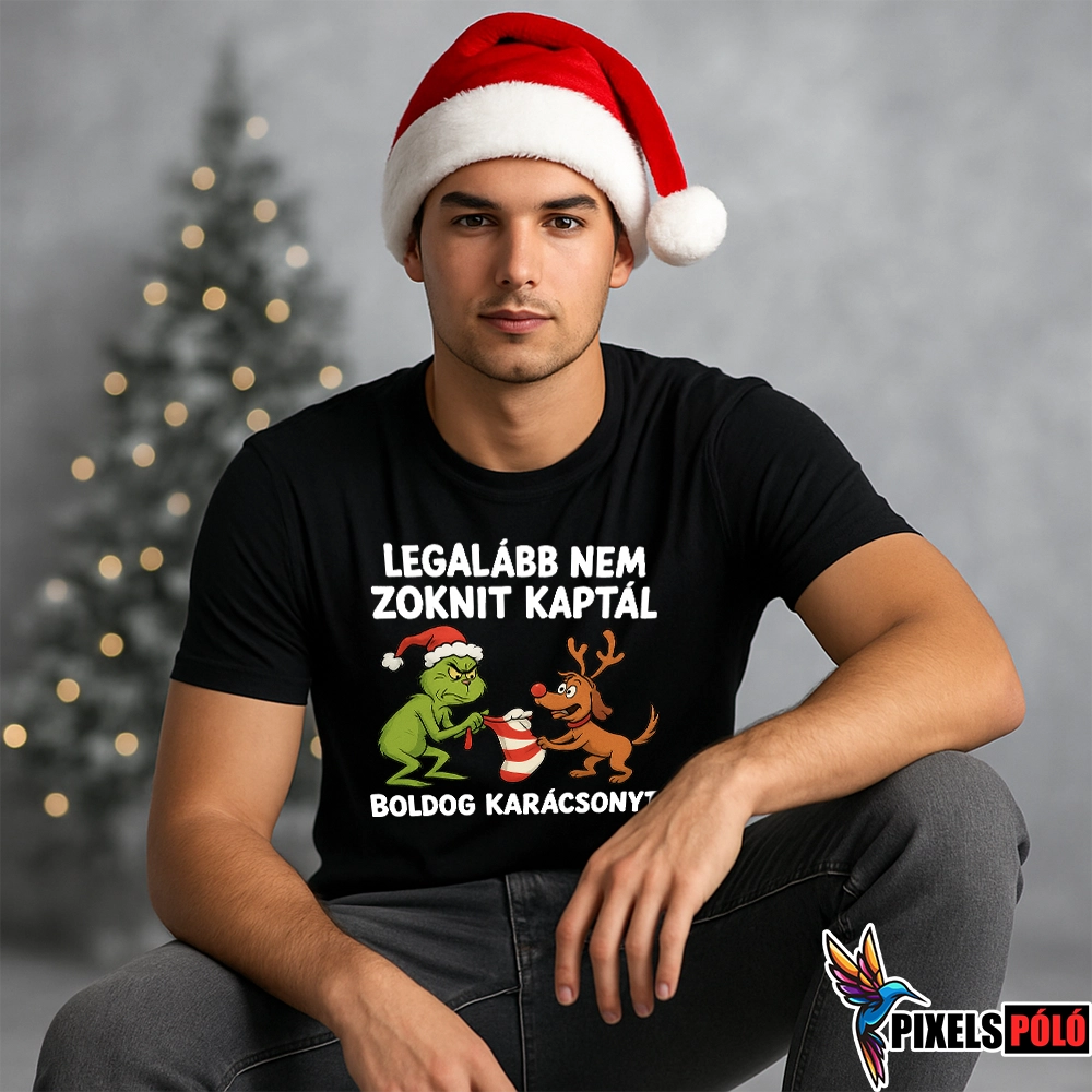 „Legalább nem zoknit kaptál” – humoros karácsonyi póló Grinccsel és kutyájával! 💚🎄