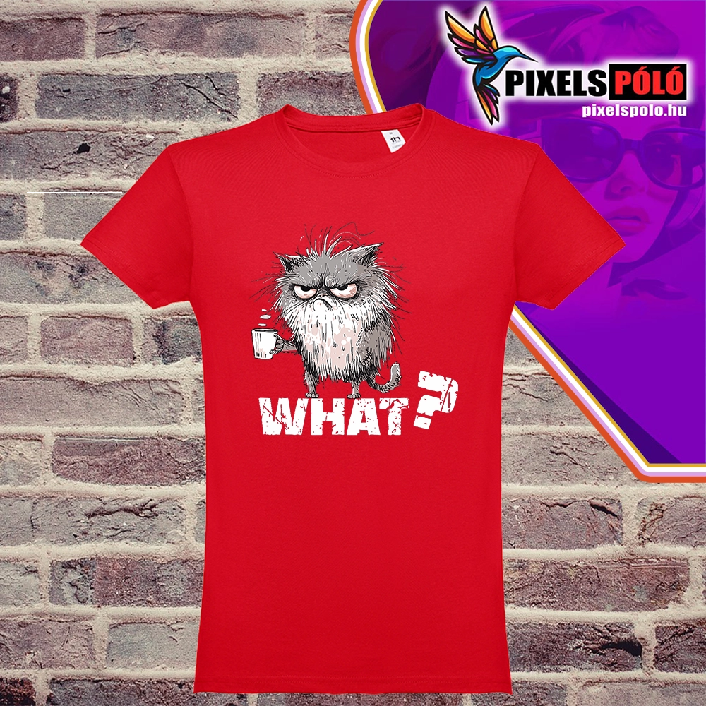 MI? feliratú vicces póló macskás grafikával. Prémium minőségű egyedi pólók