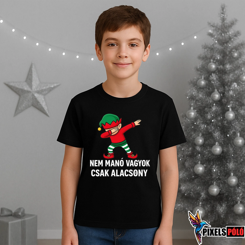 A „Nem vagyok manó, csak alacsony” póló 🎅🧝♂️ tökéletes választás mindenkinek, aki szereti a karácsonyi humort!