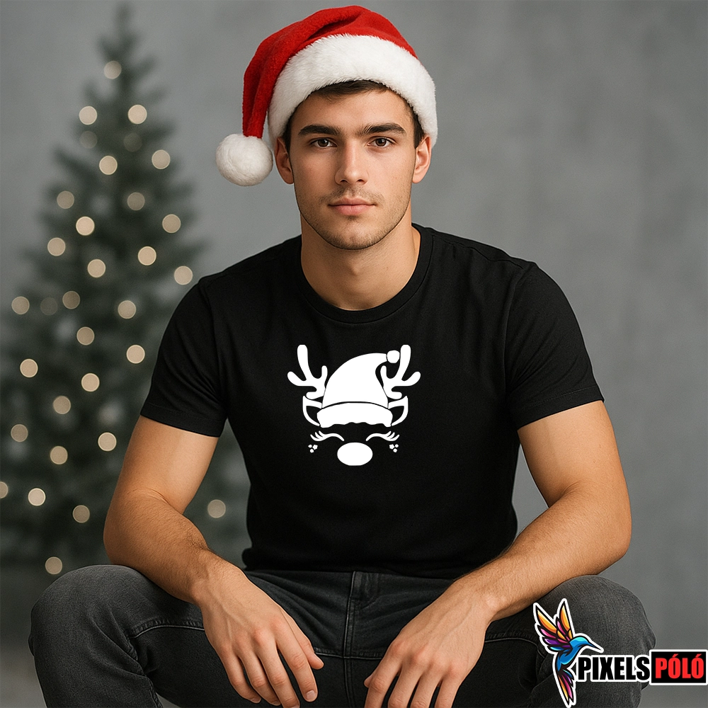 Letisztult fehér karácsonyi póló rénszarvas grafikával férfiaknak